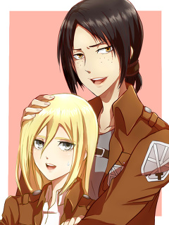 「ただい、まっ!」と笑顔でクリスタを窒息させてるユミル、萌え^^(ハグしてまふ)